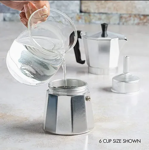 • EASY TO USE - Simply fill the lower chamber with water, add ground coffee or espresso to the filter, and place on stovetop. Within minutes, delicious, bubbling cups of espresso will fill your pot. Remove from heat and enjoy.