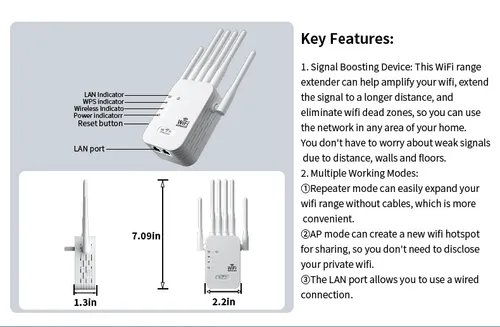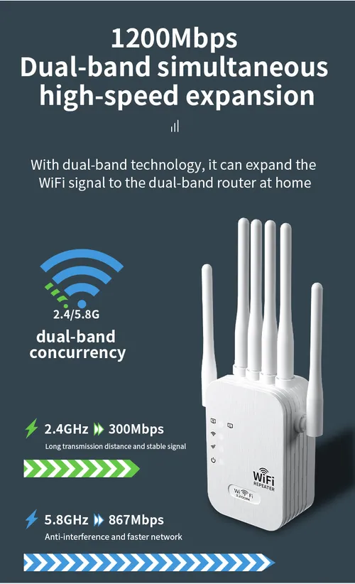 5G 2.4G Dual Band WiFi Repeater Signal Amplifier Router 1200Mbps 300Mbps Signal Booster Network Amplifier