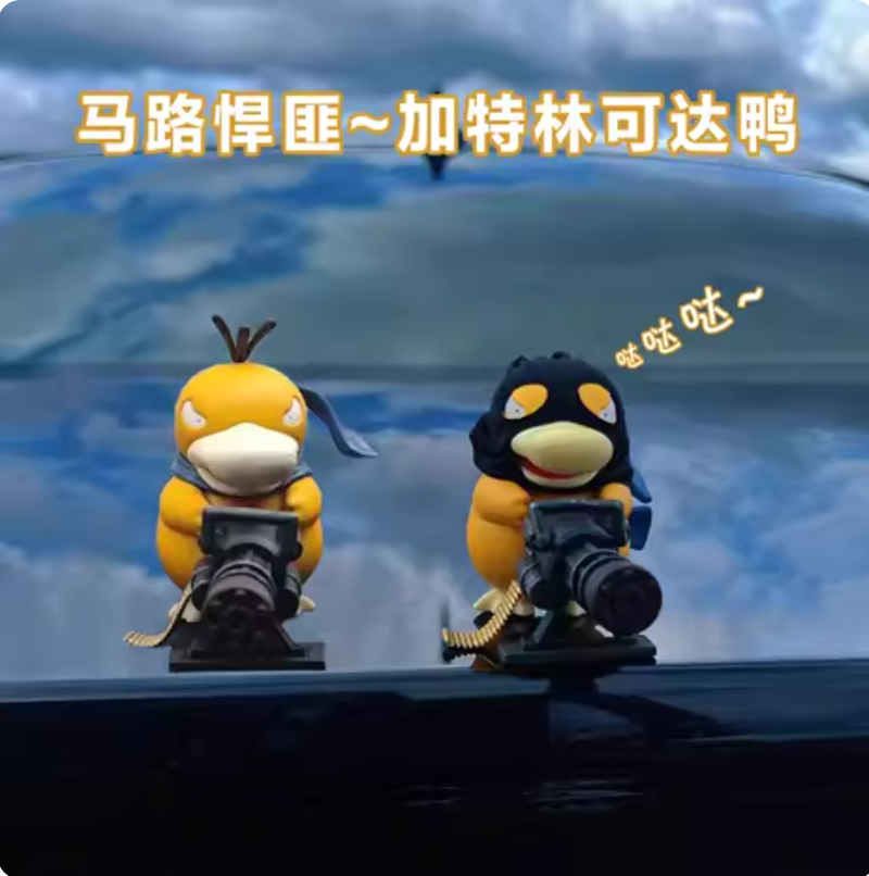Feature highlights: This Road Bandits Gatling Duck center console creative car decoration roof and rear doll figurine is an ideal toy or gift for anime enthusiasts. Made of high-quality PVC and resin materials, it is durable and exquisitely designed. The figurine comes in two sizes: 9 cm and 15 cm versions, both capturing the unique charm of the rubber duck from Japanese animation. As a finished product, it is ready for display or collection as an anime accessory. Suitable for ages 5 and above, it is a multi-functional collectible that appeals to both children and adults. Currently, we only have the 9 cm small size in stock.