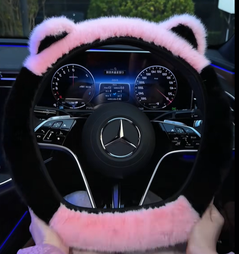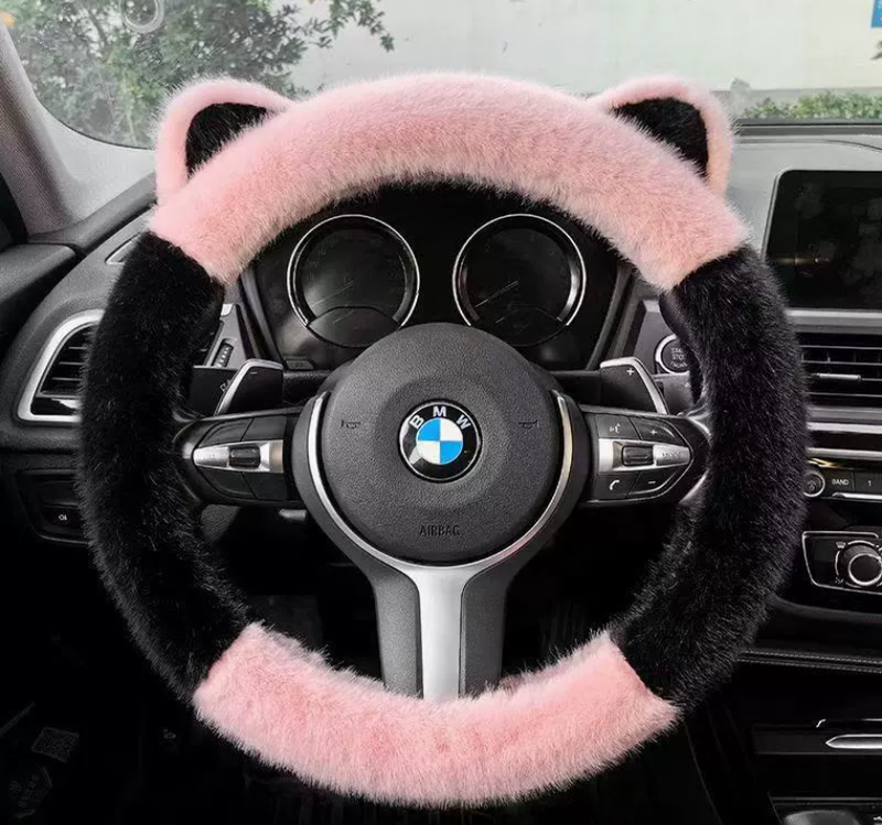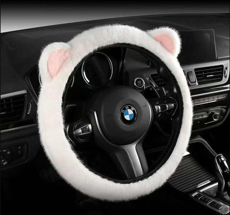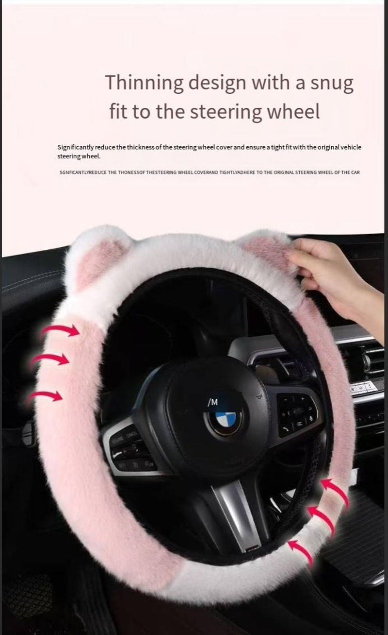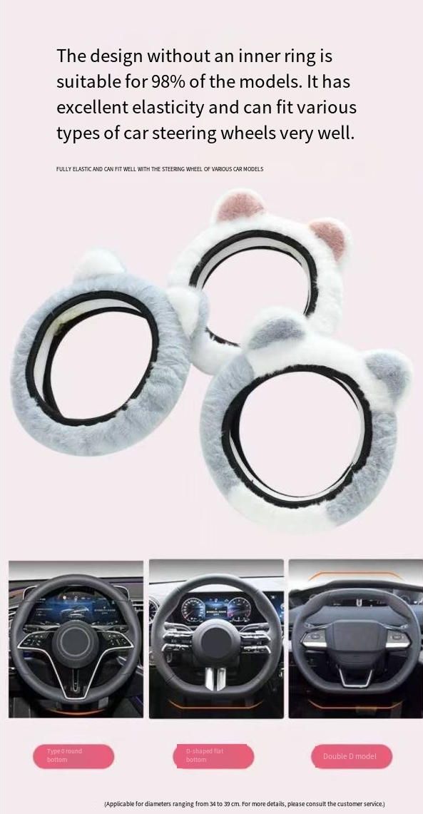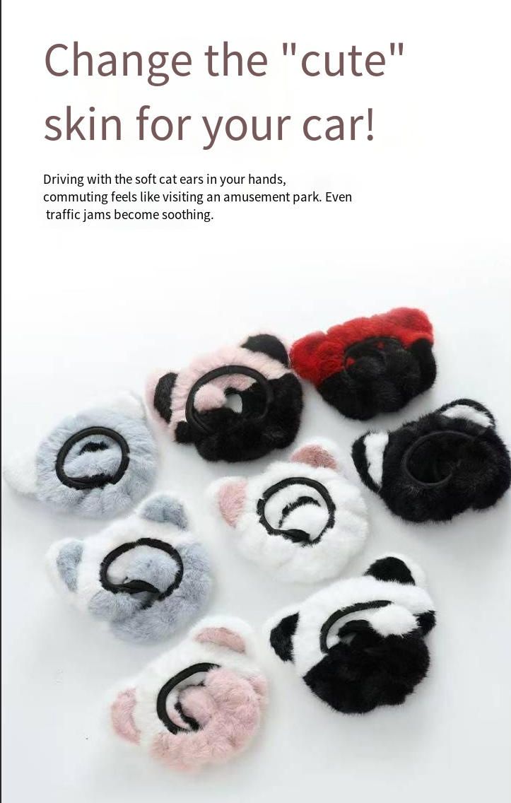 Artificial cute plush ear steering wheel cover - Comfortable and anti-slip high-quality wool-like material, suitable for various steering wheels ranging from 13 inches to 15.35 inches.