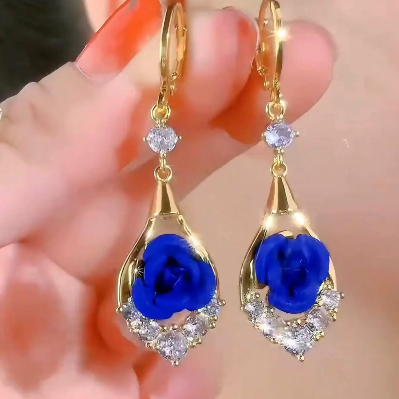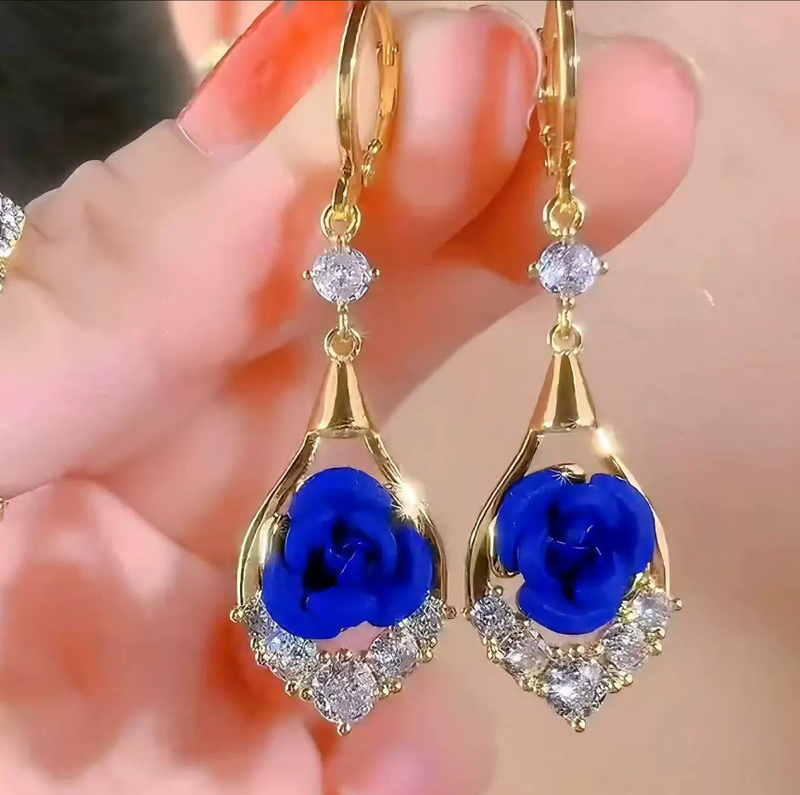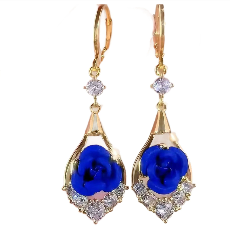 Kleyn's blue flower earrings - elegant and luxurious high-end style women's ear studs with delicate ear clasps, new trendy jewelry pieces