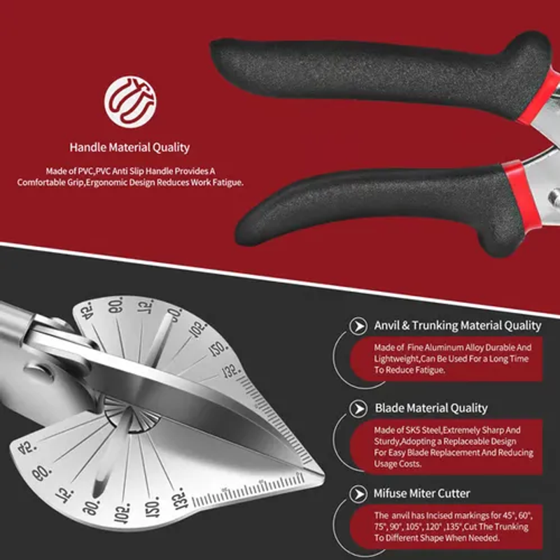 Multi Angle Miter Shear Cutter Hand Tools,45-135 Degree Adjustable Angle Scissors Trim Shears Tools (Black)