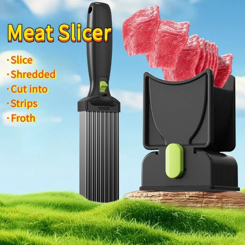 【quick slice meat cutter】One Cut 18 Slices: Up to 17 blades can be installed, easily cut a whole block of fresh meat into 18 thin slices in one stroke. Two times can turn the meat slices into shredded meat, and three times can turn the shredded meat into minced meat.