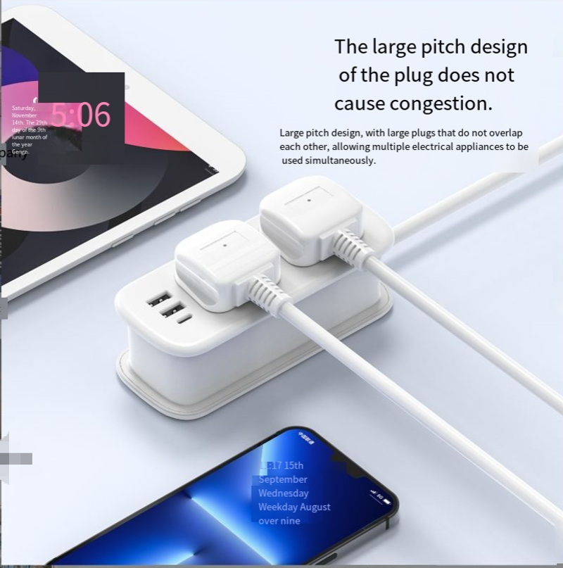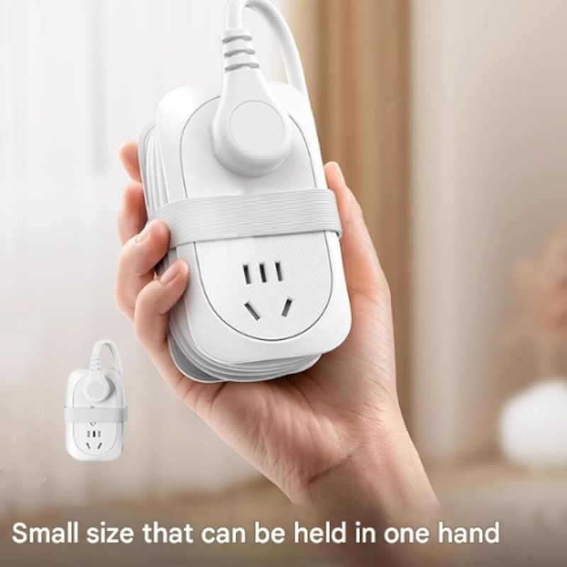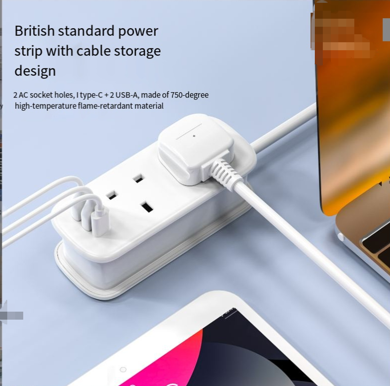 2 UK AC Sockets (13A) - Features 2 standard UK 3-pin sockets (3250W, 13A) to power laptops, hairdryers, shavers, and other household appliances. The 1.5M rollable cord neatly wraps around the body and secures with the included strap for tangle-free storage.